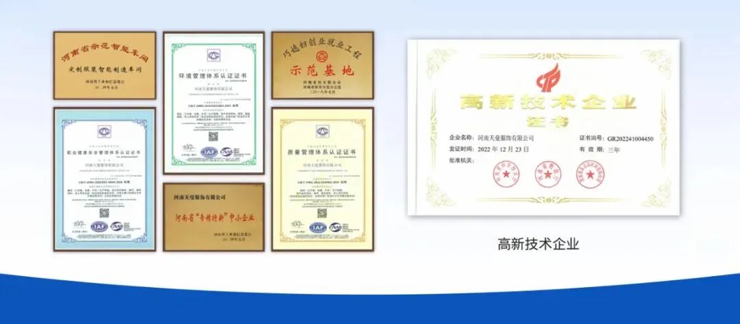 天曼服飾智能化工廠還先后被河南省工信廳認定為“專精特新智能化工廠”,被河南省科技廳評定為 “高新技術企業(yè)”,并榮獲 “河南省智能制造試點示范企業(yè)” 稱號。旗下 “屹奧校服” 品牌更在行業(yè)內屢獲殊榮:2023 年摘得 “全國十大校服最具影響力品牌”,2025 年獲評 “全國校服四星級標準校服生產(chǎn)基地”,成為河南省唯一獲此雙項榮譽的校服企業(yè)。這些資質不僅彰顯了企業(yè)在技術創(chuàng)新與品質管控上的領先優(yōu)勢,更成為天曼服飾拓展跨境市場的 “硬核背書”。