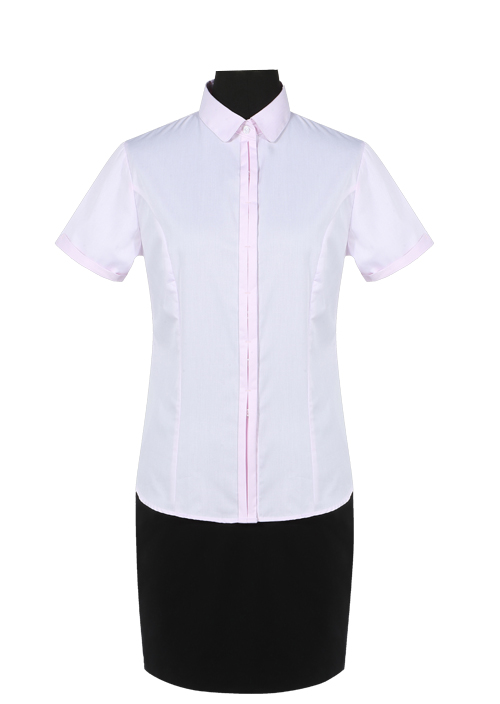 款式:粉色斜紋CVC短袖襯衫
